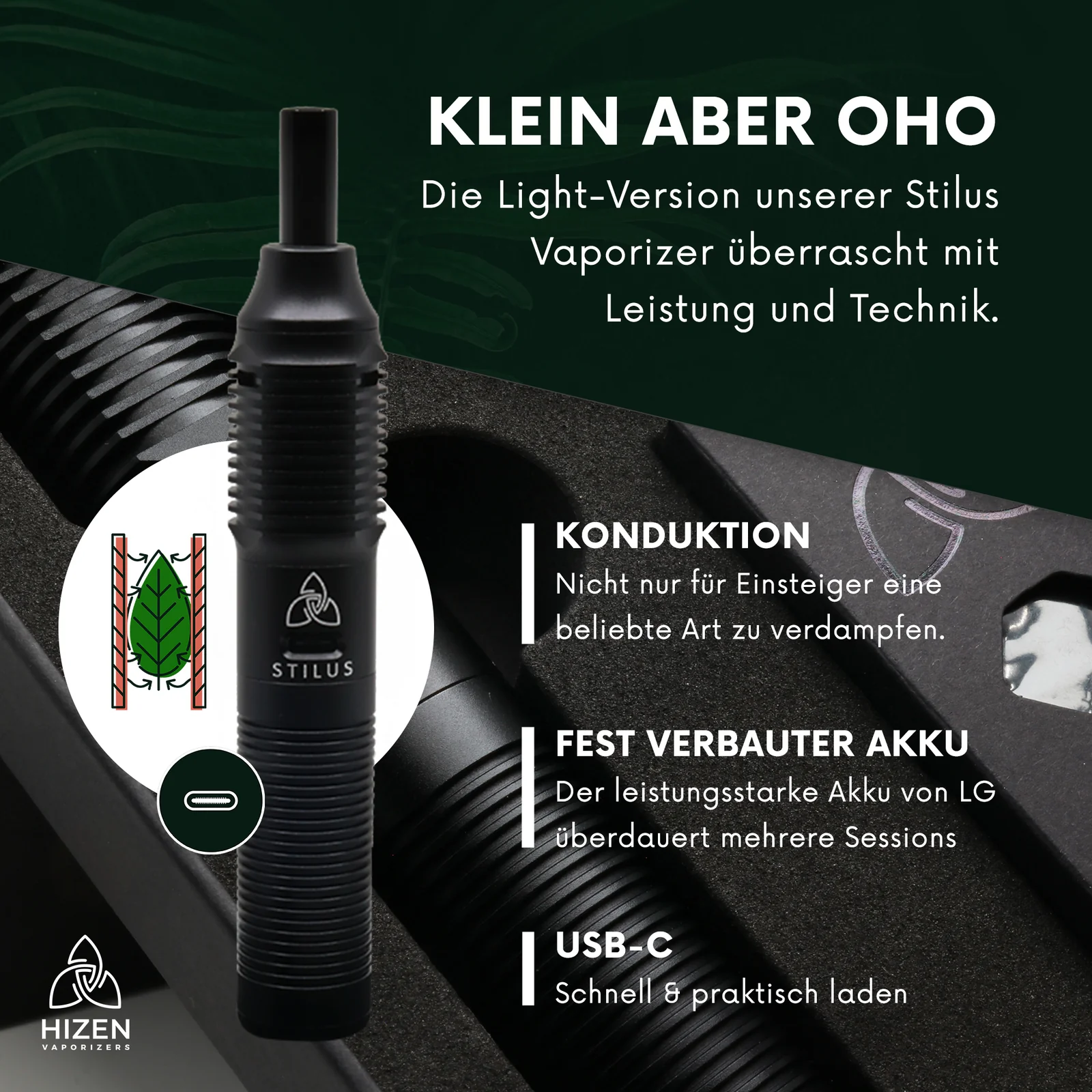 „Kräutervaporizer mit 3 Versionen, einstellbare Temperatur von 80°C bis 220°C. Entwickelt in Deutschland. Die Lieferung des Hizen Vaporizers kann aufgrund der hohen Nachfrage bis zu 7 Tage dauern.“