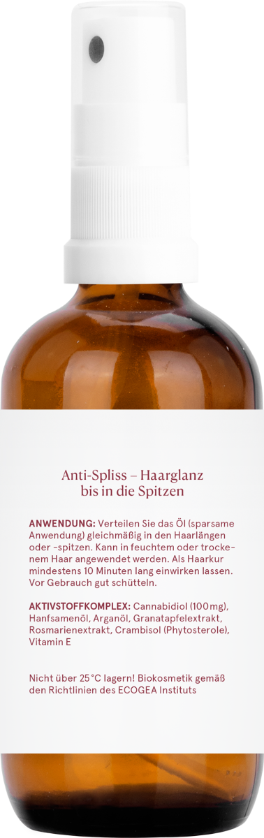 Natürliche Öle wie kaltgepresstes Hanfsamen- und Arganöl pflegen und stärken das Haar. Krambeöl und Phytosterine stärken das Haar von innen und beugen Spliss vor.