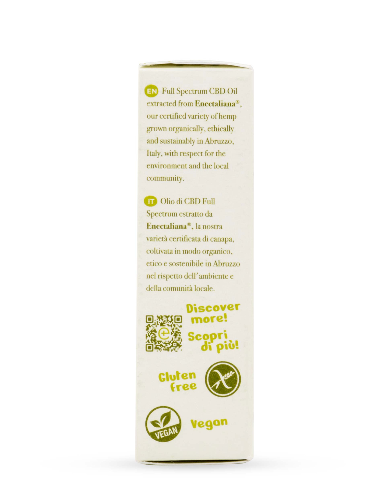 Full-spectrum premium hemp extract from industrial hemp (cultivar Enectaliana), containing 5% cannabidiol (500 mg). Includes additional cannabinoids CBG, CBC and CBN. THC below 0.2%. Vegan.