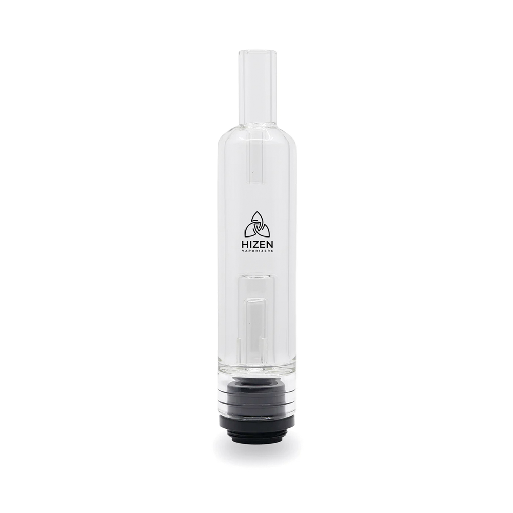 Bubbler Mouthpiece — compatible with all Stilus & Stilus Pro models. Delivers smoother, cooler, dense and pure vapor via water filtration; reduces throat dryness, minimizes coughing and traps fine herb particles. Constructed from durable borosilicate glass—heat- and chemical-resistant for extended service life. Usage: fill bubbler to desired level, dry exterior, attach mouthpiece to vaporizer, mount bubbler and inhale gently. Caution: prevent water ingress into device electronics. Ready to ship; delivery 1–3 days. Includes selected Hizen accessory and informational material.